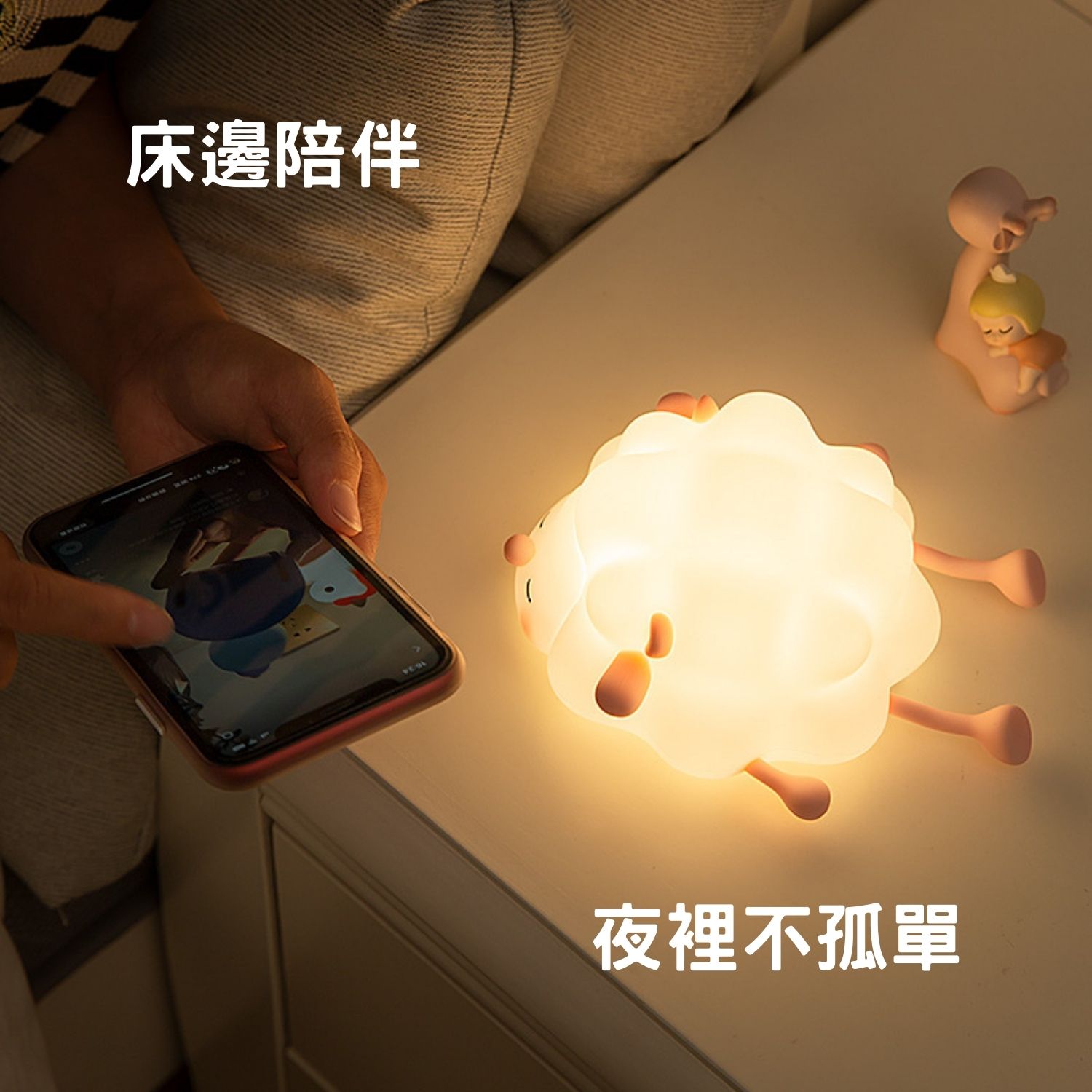 治癒設計,壓力煙消雲散!觸感柔軟的小綿羊睡眠燈,外形治癒,讓你瞬間忘卻一切煩憂,感受愜意與安適。